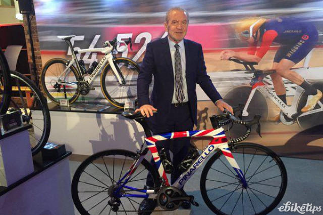 Alan Sugar rides his Pinarello Nytro eights weeks after knee op.