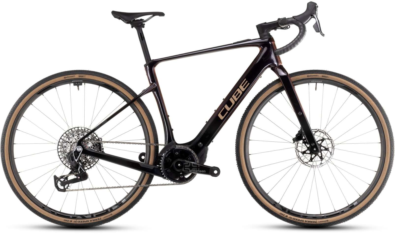 The Cube Nuroad Hybrid C:62 SLT 400XT is a electric gravel style bike which uses the Cube Nuroad Hybrid C:62’s carbon frame. Its practical with clearance for tyres up to 50mm with mudguards fitted. It also has carrier mounting points
