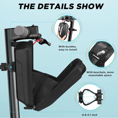 Details Upgrade: Electric scooter front bag upgrade round button and taping to butterfly button and D bracket, more convenient to install and quick release. The top of the kick scooter bag is equipped with a keychain for simple get entry to to keys. Waterproof scooter front bag added a handbag to solve the embarrassment of inconvenient carrying. Electric scooter handlebar bag widened tail chain and tightened the bottom gap in order that small items won’t fall out