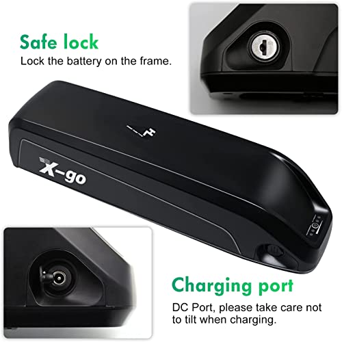 【Main Features】⭐4 pin battery base, it will fit most bike frames. it’s easy to remove and charge at home or bike. ⭐Safe Lock with two keys, prevents the battery from being stolen. ⭐LED power Indicator, inform you charge the battery on time. ⭐Built-in BMS protective board, as well as overcharge, overdischarge, overload and short circuit protection.